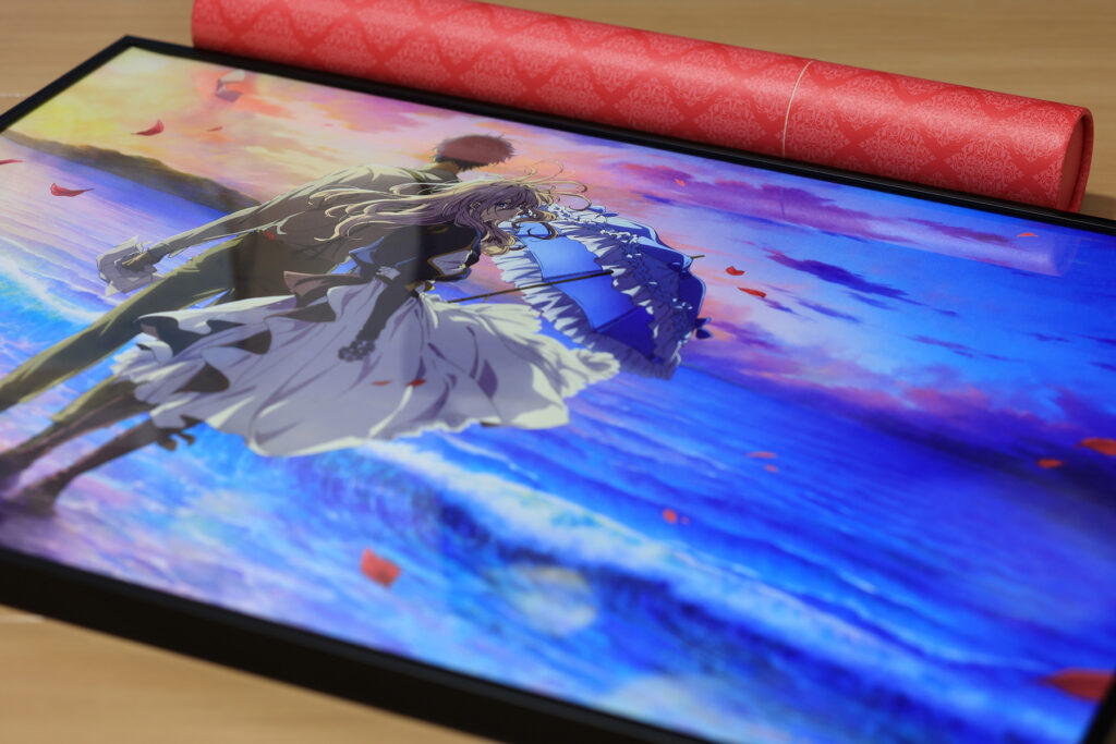 「劇場版 ヴァイオレット・エヴァーガーデン ART POSTER 【TypeA】」というもので、広演色印刷技術である「カレイド印刷」されたポスターです。おそらく、劇場に貼ってあったものより高演色だと思います。紙質も単なるコート紙ではなく、アーティスティックなザラみを帯びた紙質で、高級感があります。さすが「特典とは違うのだよ、特典とは!」といったところです。