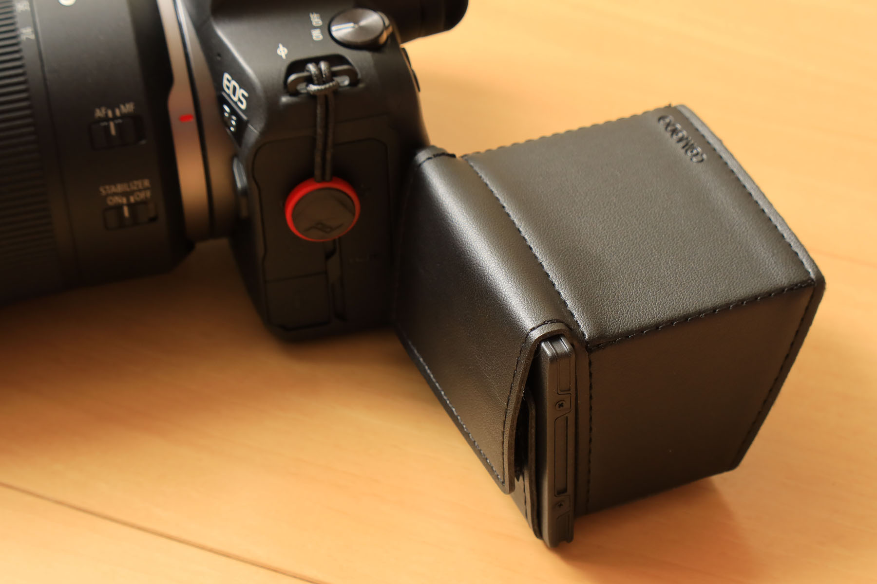 EOS R6に対しては本当にカツカツサイズなので、EOS R や R5の場合は、大きい方のCMD-MH-01V35が良いはずです。EOS RPはこれ(CMD-MH-01V30)で良いです。