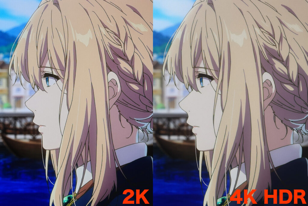そして解像度より違うのは色と明るさ。4Kの方はさらにHDR(ハイダイナミックレンジ)ということもあって、表示デバイスの性能に委ねるようなニュートラルトーン。一方2Kの方はテレビ的。明るい部屋で見やすいのは2Kですが、映画的な情緒を感じるのは4K HDRの方ですね。ただ、再生環境もそれなりに本気が要求されますね。