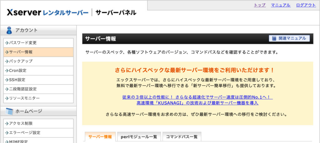 masaさん@Digital Life Innovator に教えて戴きまして(ありがとうございます)、このブログのホスティングをお願いしているXserverが、通常の3倍以上の超高速WordPress実行環境「KUSANAGI」を導入した新サーバーに無償で移行できるということで、早速移行してみました。