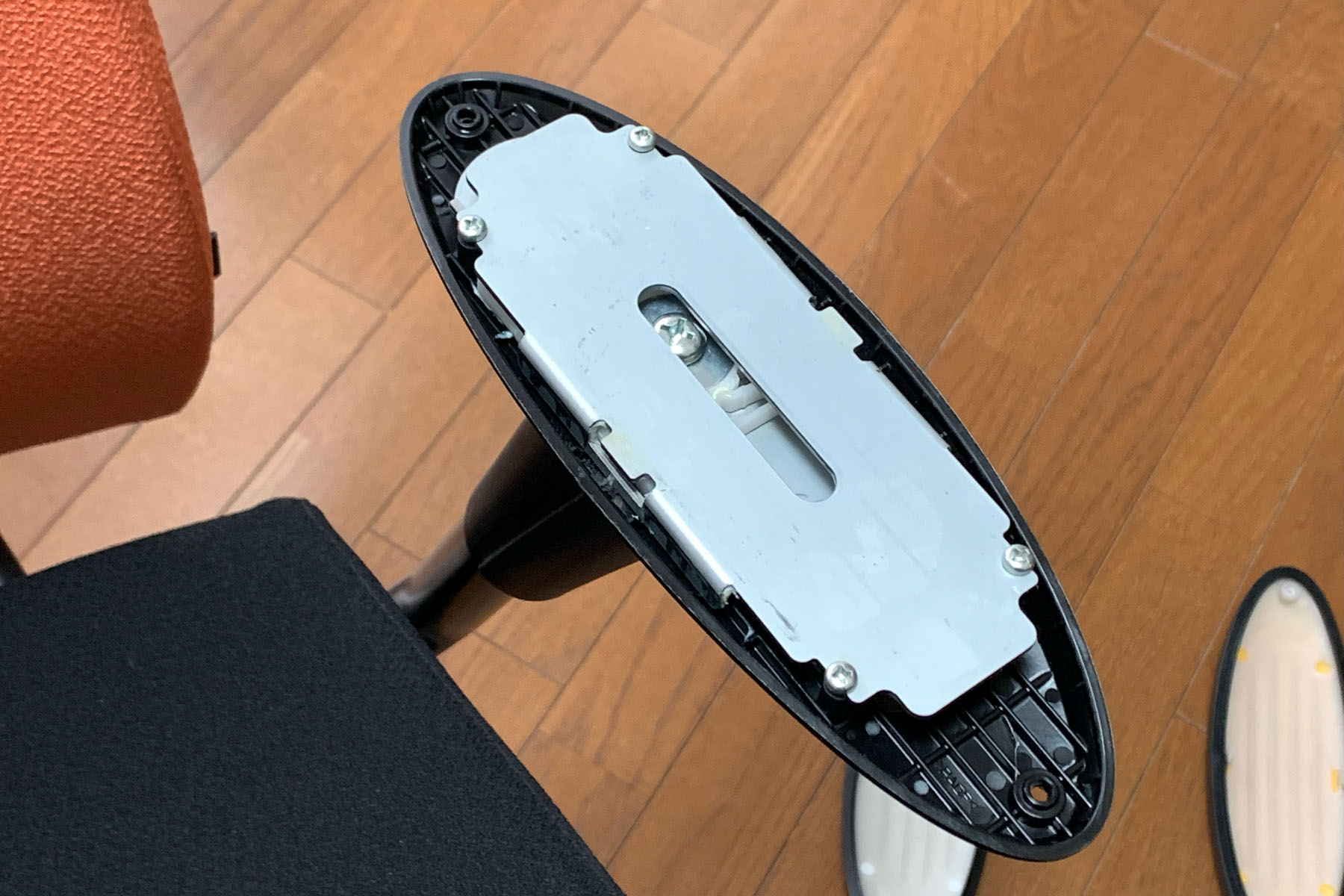 先日ガススプリング部分をメンテナンスしたITOKI COPELですが、実は肘掛けのパット部がひび割れていまして、肘に刺さって痛いのでパーツ交換しました。右手側の肘はマウスを持っている時間が長いせいか問題なく、左手側の肘が劣化。パット部は180度回転できるので痛くないようにもできるのですが、なんかみずぼらしいので交換することにしました。