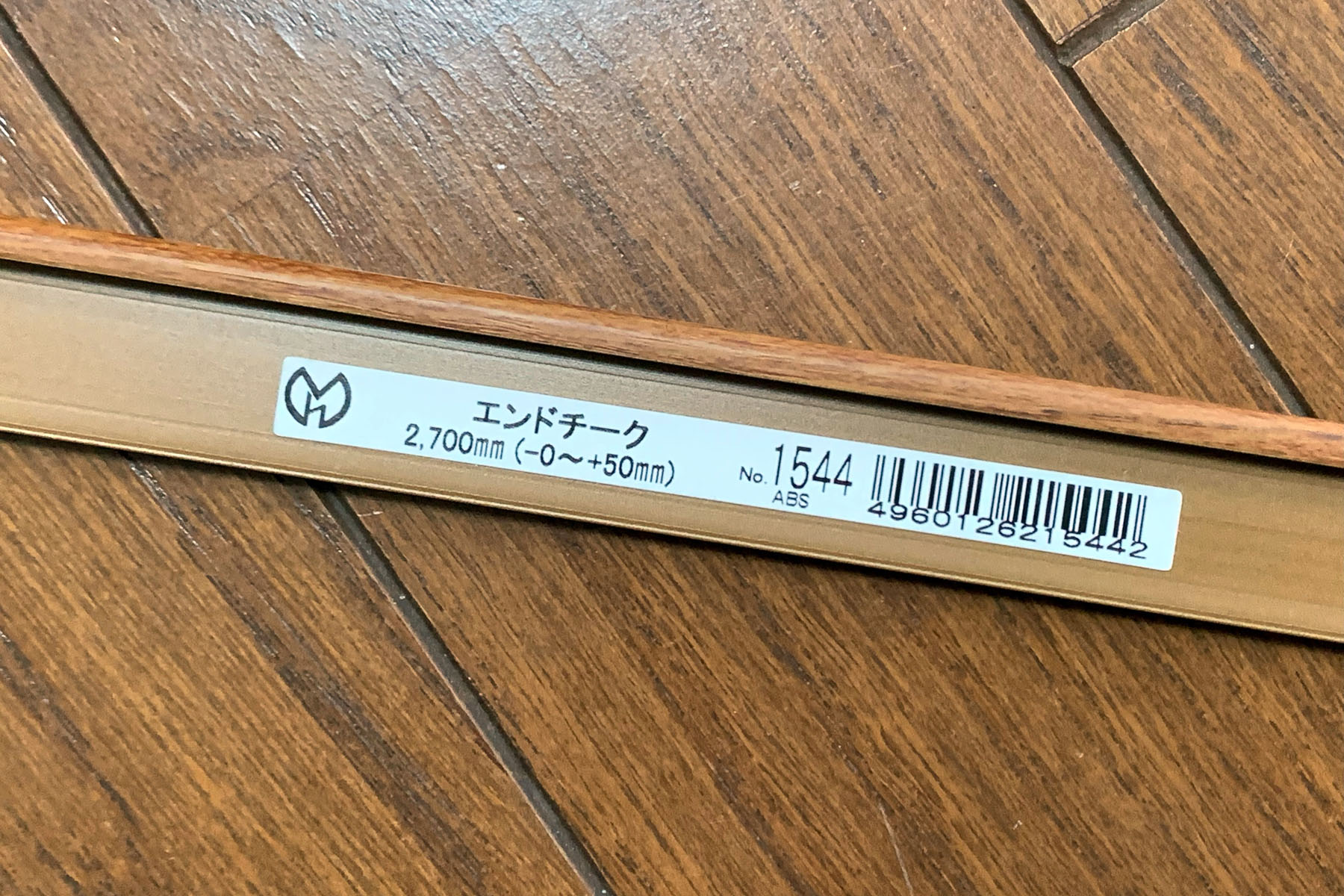 こういう部材をホームセンターで買ってきました。長さは2mあれば足りたのですが、この色で2mというのがなく、2.7mのものを買ってきました。車のトランクスルー機構を使って、トランクからフロントガラスまでギリギリ積載できる長さでした。