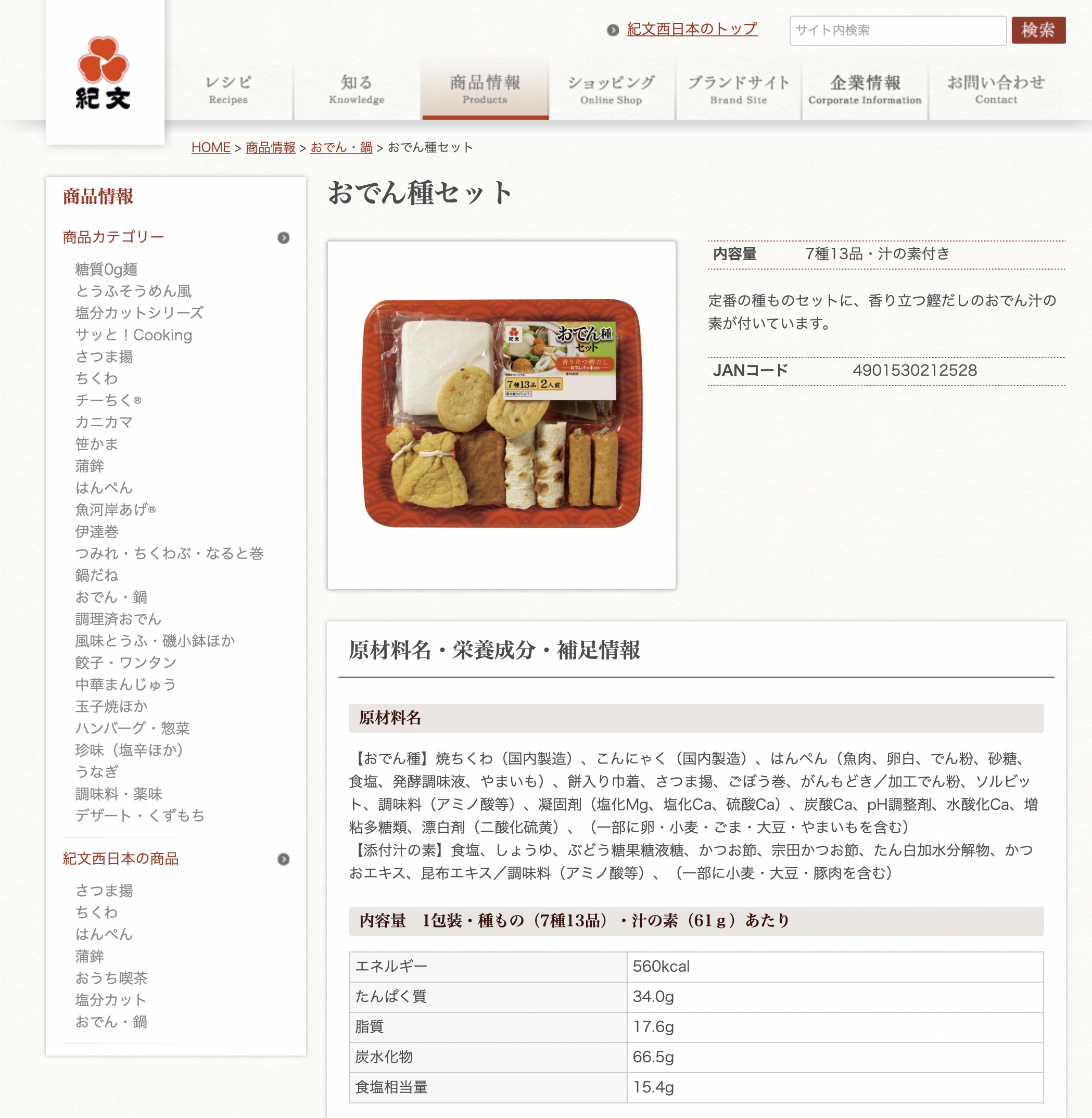 …そう? 同じ紀文の「おでん種」セットの成分表を見ると、
