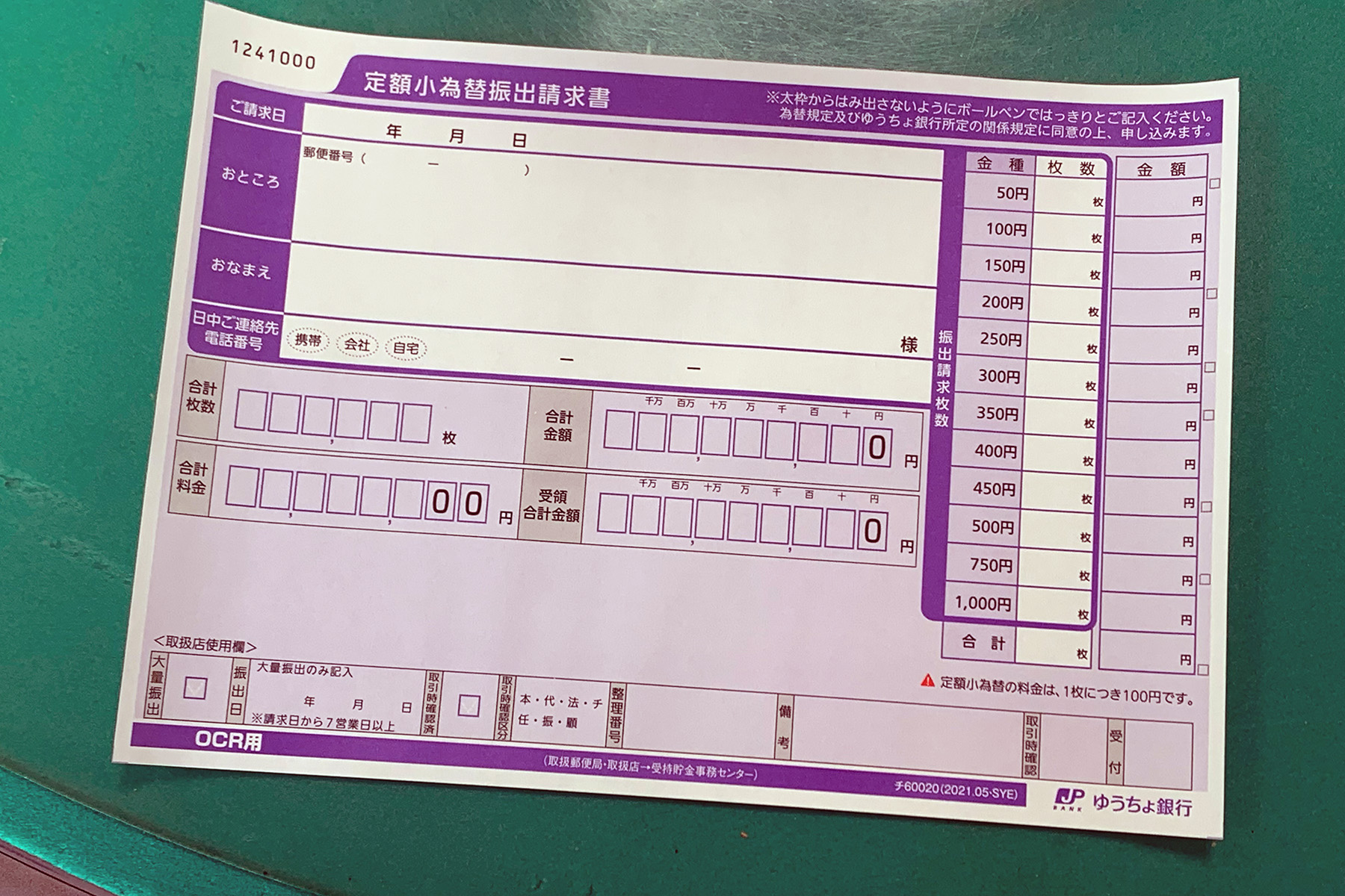 定額小為替の手数料が、1/17から2倍になり、1枚200円の手数料になります。