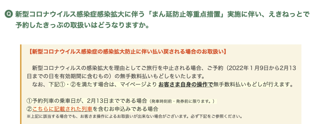 まん防を受けてJRの切符払い戻しが無料化
