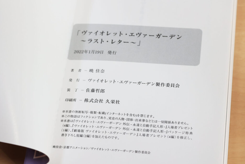 京都アニメーションから「ヴァイオレット・エヴァーガーデン 〜ラスト・レター〜」が届きました。