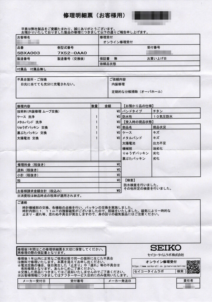でも7年目の個体ですよ?黙って2.8万円請求されても分からないのに、メーカー保証なんてとっくに切れてるのに、どれだけ誠実な会社なんですかセイコー…