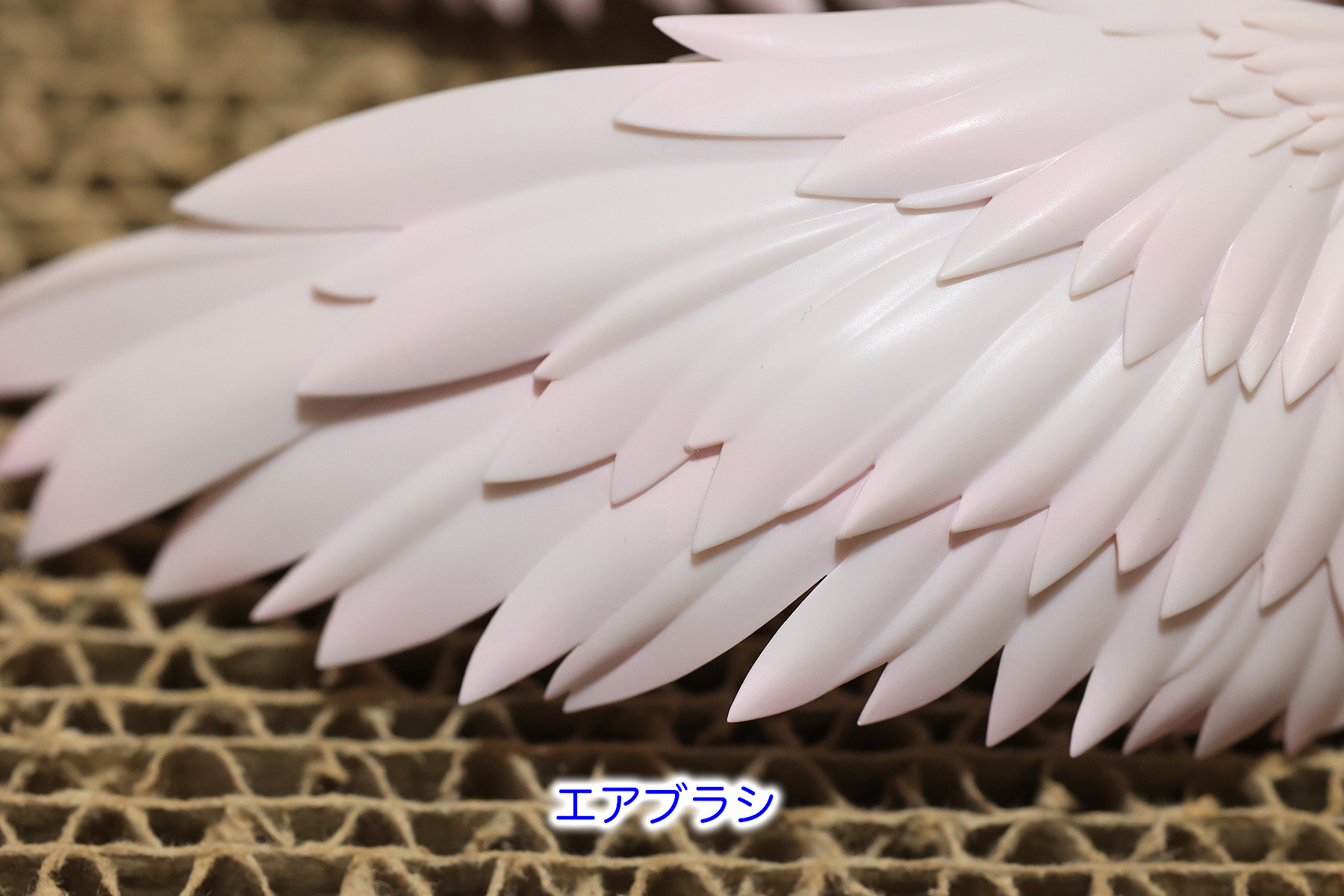 重なって一体成型されている羽根の先端だけグラデーション塗装する…のが自らに課したミッション。