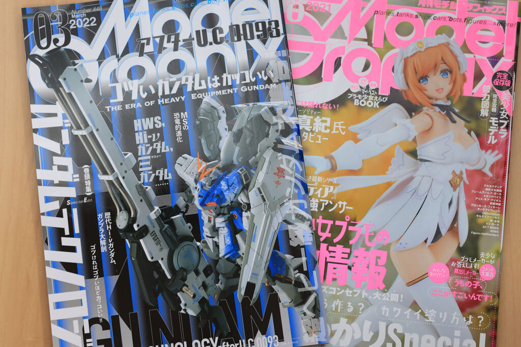 なんか毎日プラモデル(ルミティア)の話題で申し訳ないですが(当ブログのカテゴリー名称も「ガンプラ」から「プラモデル」に変えました)、モデルグラフィックス 2022年3月号 と 2021年8月号 を購入しました。