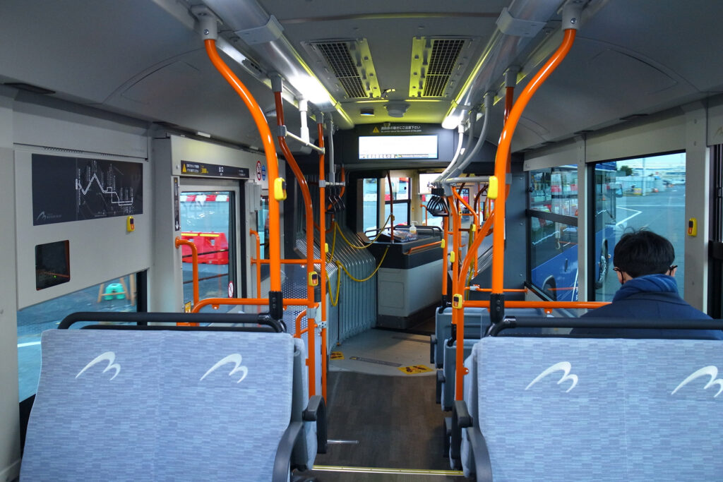 この日ではないですが、昨年暮れに乗車したときの写真も掲載します。乗るとこんな感じです。各地にある路面電車に似た感じですかね。広島の路面電車とかにも似てる感じがします。