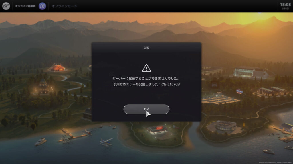 そして謎エラー。えっこのゲーム、PS Plusに加入しないと遊べないの?と嫌な予感がしましたが、システム再起動で無事オンラインに繋がりました。もしかすると息子が別筐体で、ダウンロード特典のPS4版GT7を同時に起動していたのが悪さしていたかも知れません。