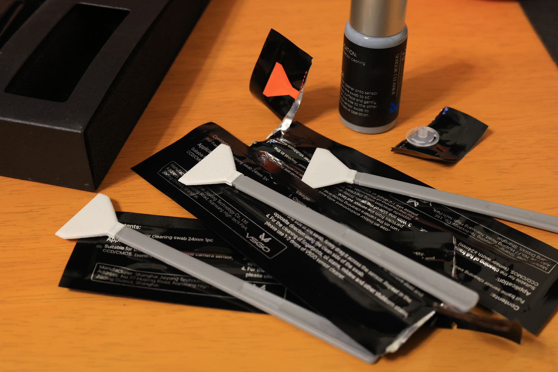 一度掃除したスワブは気前よく捨てるべきなので、都合5本使いました。12本中の5本を使ったところで、キヤノンに出す8,250円と比べれば全然安いです。最悪なのは硬質なホコリ(空気中によく存在する石英など)を噛んだ状態でセンサーを撫でてしまうことですからね。
