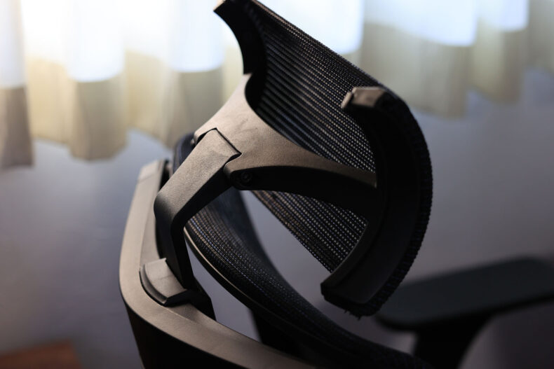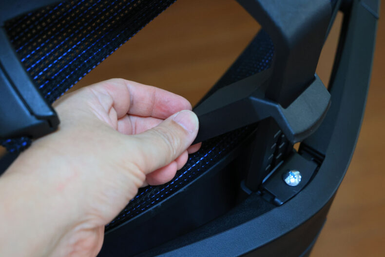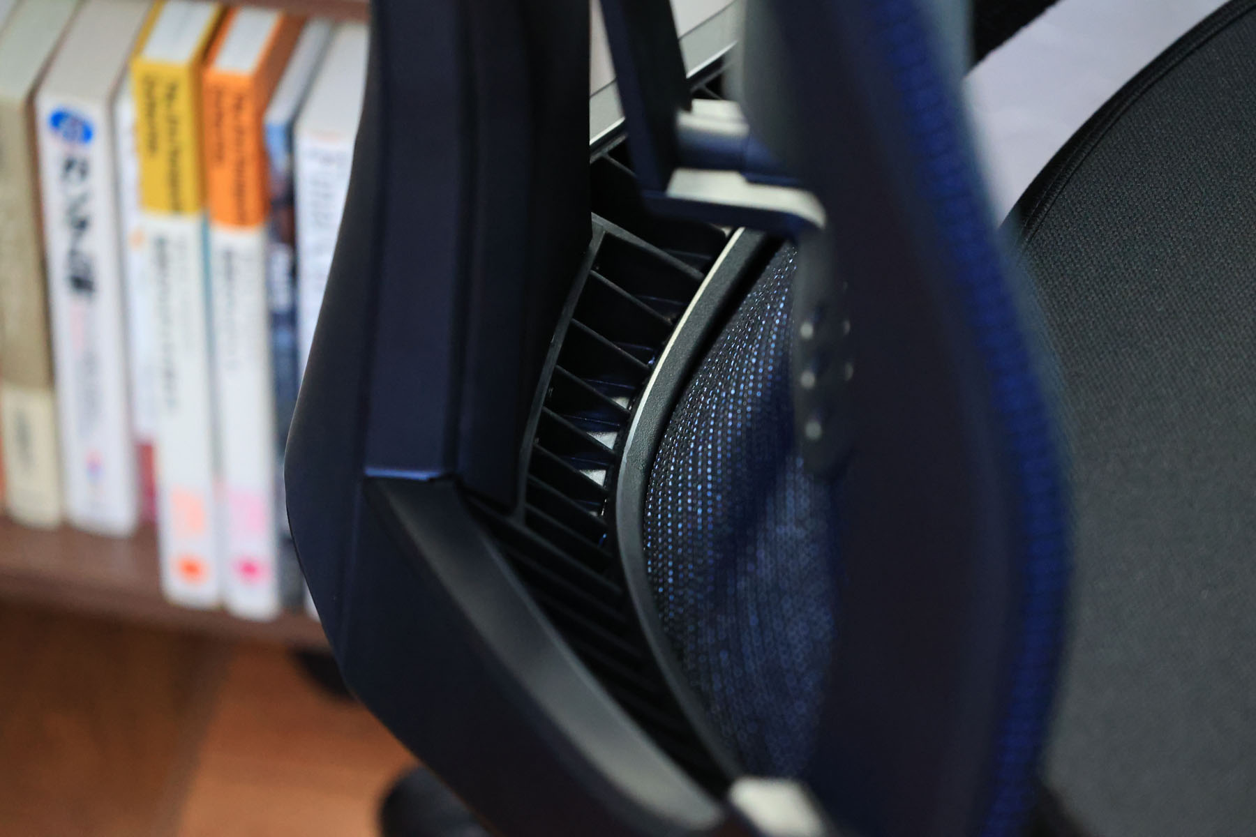 ヘッドレスト。高さと角度調整が可能ですが、かなり背が高い人向けに設計されているのか、184cmの私でも一番下の段でちょうど良かったです。