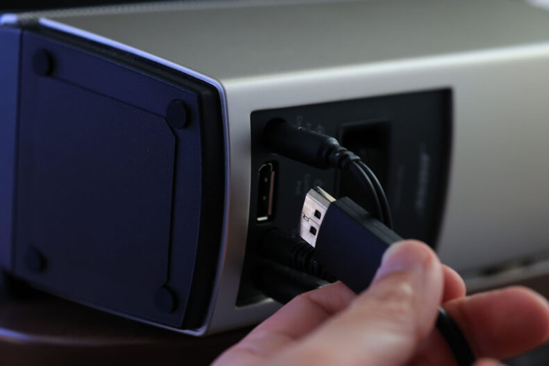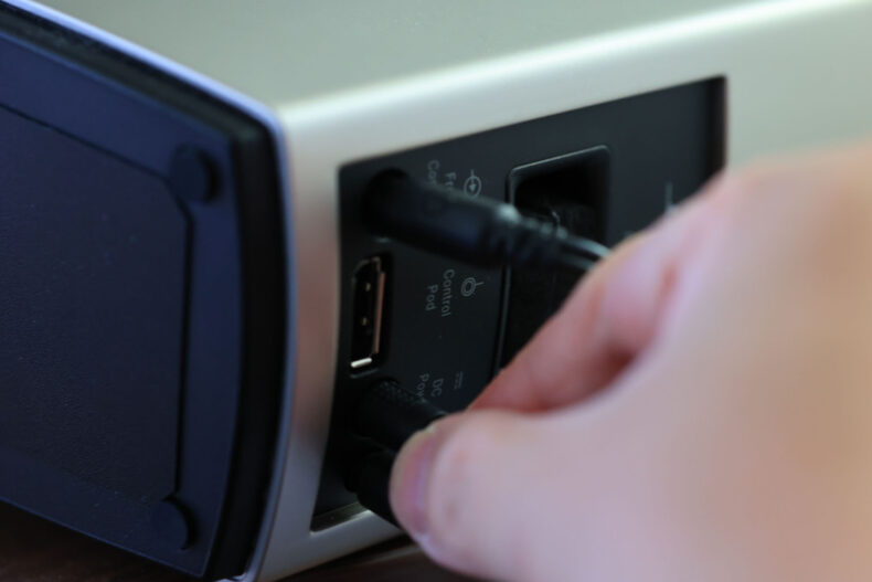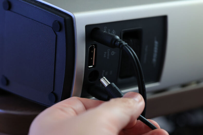 5秒後に電源を差し込みます。「ピポッ」という音がして、スピーカーが起動します。