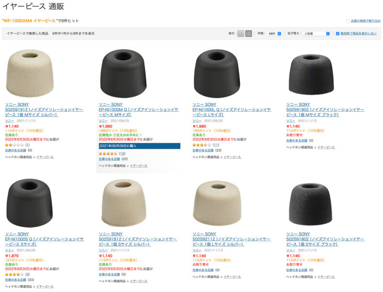 私は既にWF-1000XM4より先に(WF-1000XM3で使うために)EP-NI1000を買ってしまっているので色の違和感を除けば当面は困らないのですが、まぁでもシルバー(というかベージュ)が入手できるのは助かります。これもなくならないうちにスペアを買っておいた方がいいやつですかね。