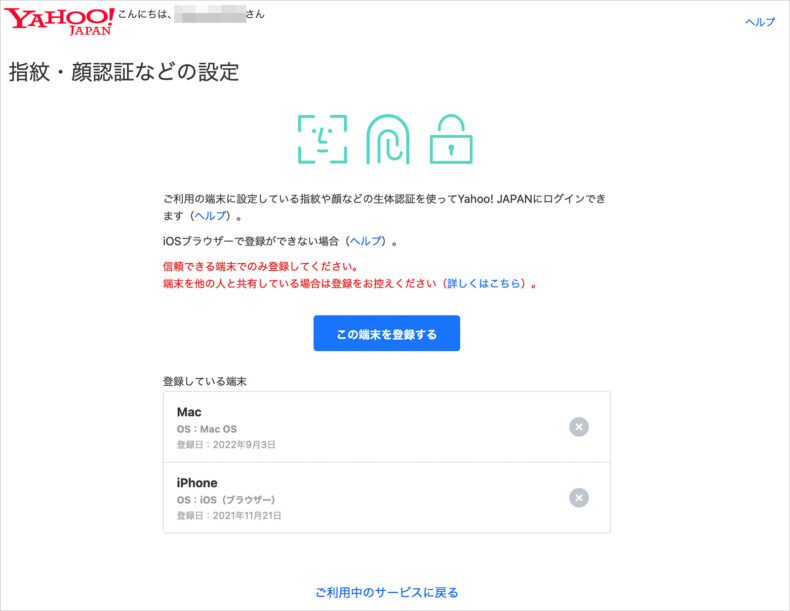 MacのSafariで、Yahoo!ログイン時にTouch IDが使用可能に