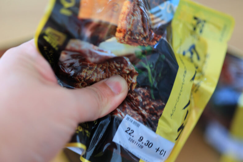 作り方は超簡単。チンする前の金のハンバーグを袋の上から押しつぶしてハンバーグを粉砕し、チンした後に茹でたパスタにかけるだけです。あまり細かく粉砕しないのがこのメニューならではの特徴を出すポイント。