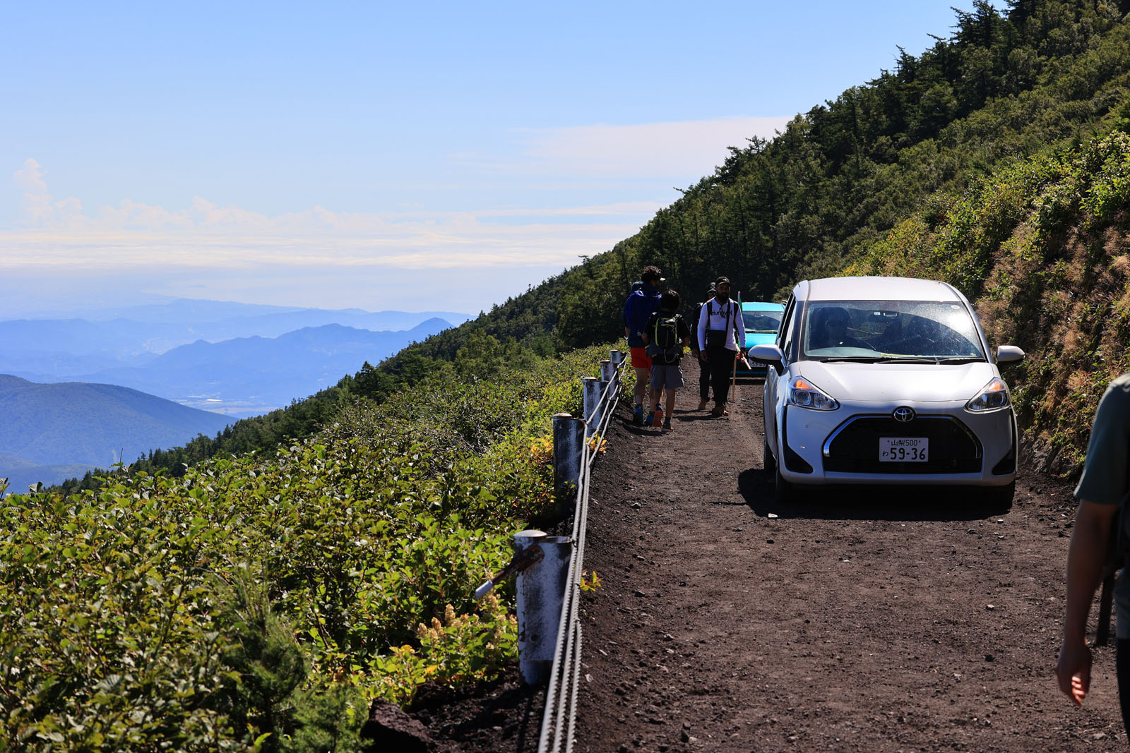 なお9月から富士スバルラインの通行規制が解除されていますので、9/1〜9/10の間がマイカーで五合目まで乗り付けて登山できる期間になります。但し登山目的のマイカーは五合目より数百メートル手前の道の横に駐めさせられます。五合目にある駐車場は短時間滞在用の(土産物屋に短時間でお金を落としてゆく)客専用の駐車場になります。