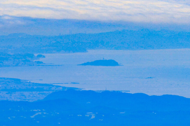 拡大&「かすみを除去」処理。江ノ島ですね。見えるんですね。