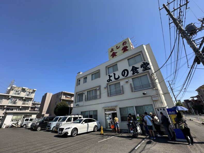 孤独のグルメSeason 10の第一話に登場した「よしの食堂」に早速行ってきました。一話放送前でしたが事前に特番があったのでそれなりに行列ができていました。駐車場はほぼ満車、空き1〜2台と言ったところで、タイミングが悪いと駐められませんが私が行ったときにはちょうど1台分空いていてセーフ。