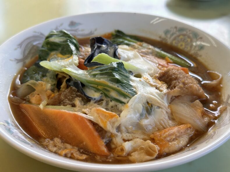 そして〆の「煮かつ」(615円)。劇中の石田ひかりの厨房への「煮かつー」の発音がリコリコの「さかなー」に聞こえましたが、それはさておき、かつ煮ではない煮かつ。ご覧の通り野菜がたっぷり入っていて完全食を食べている気分になれます。これ毎日食べていても健康維持できる気がする(←