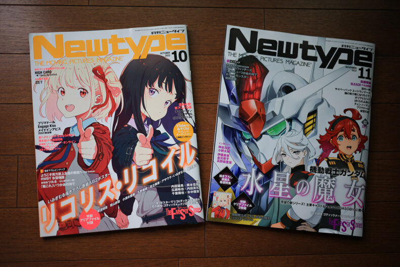 さて月間ニュータイプ。リコリコの最終回直前に発売された10月号と、水魔女の放送直後に発売された11月号です。