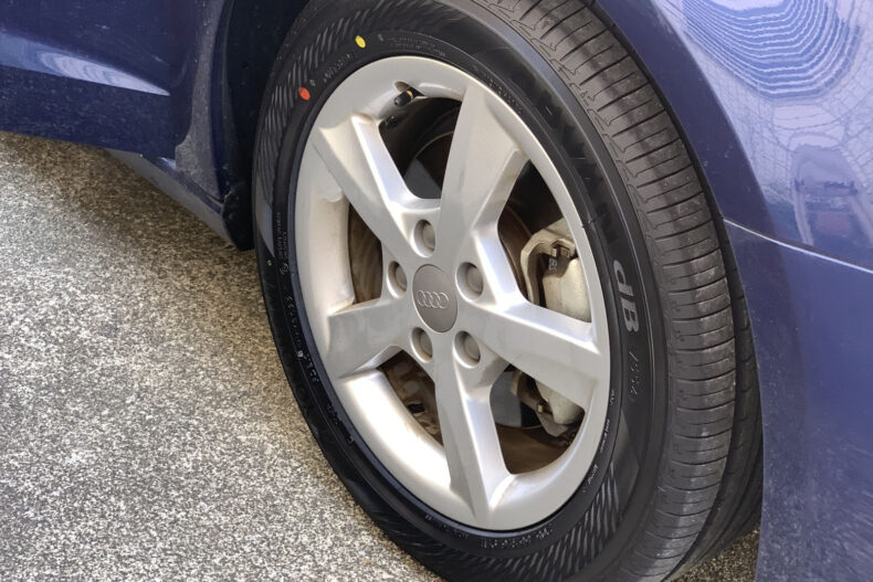乗り心地ですが、転がり抵抗はとても少なく、音も静かですが、やっぱり柔らかすぎる乗り味が気になります。前の8P型のA3のときにも履いたことがあるのですが、ちょっと車のキャラクターには合わないですね。やっぱりContinentalは良かったです。
