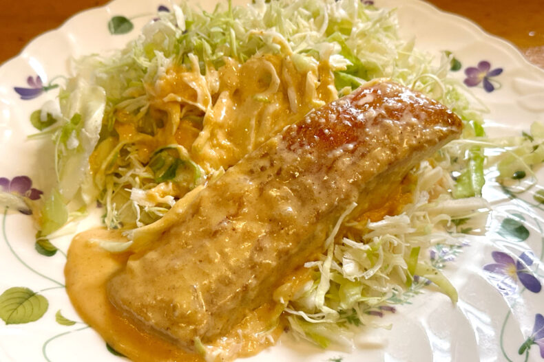まずは金目鯛のソテー・オーロラソースから。キッチンカフェのお魚フレンチ。本編では「真鯛」でしたがね〜(間違えましたが、間違ってもちゃんと金目鯛が出てくるのがすごい(笑))。こちらは「追加の単品」でオーダーしましたが先にできてしまいました。「先にできちゃいましたけど温かいうちにどうぞ」という「姉さん」の一言がむしろ暖かい。金目鯛がカリッと焼けていていい食感です。
