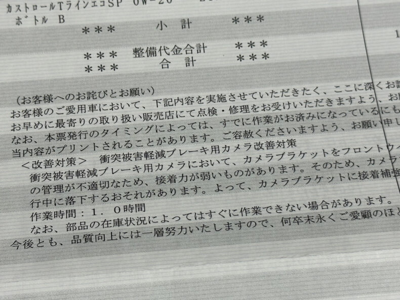 この情報が公開されたのが10/20の14:00。同日17:00にはディーラーから連絡があり、10/21には対策修理が行われて帰ってきました。そのディーラーでは本件対策1号だったようです。たまたま在宅勤務だったので応対できたというのもありますが、引き取り修理だしすごくサービスがいいですねトヨタ…。
