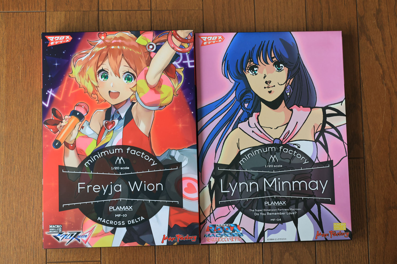 昭和マクロスの歌姫であるミンメイの箱と比較すると同サイズではなく、微妙に大きいです。というのも部品が多くて嵩張るんですね。