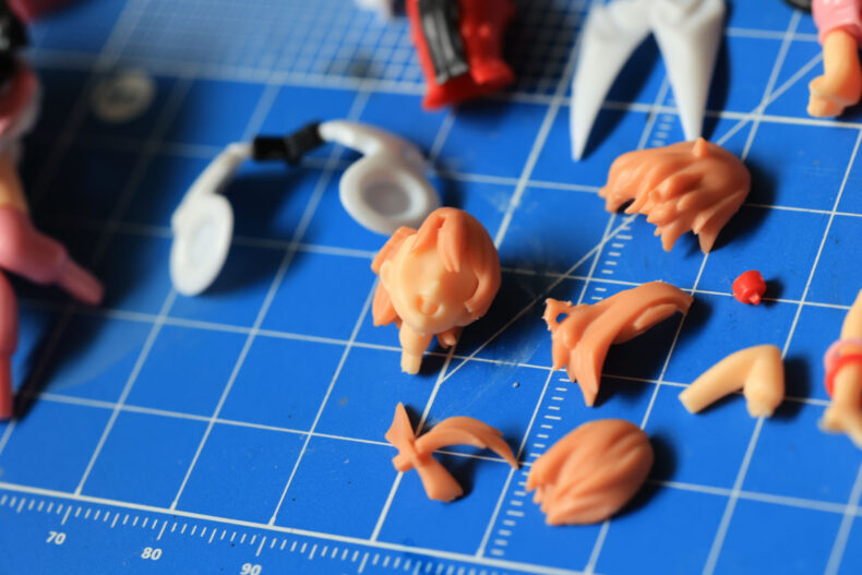顔は後ハメは…無理そうですねこれ。まぁ複雑な形状なので合わせ目消さなくても違和感ないですかね。ほかの箇所はほぼすべてパーティングライン=色替え部分になっているので、パーティングラインを消す必要がなさそうです。
