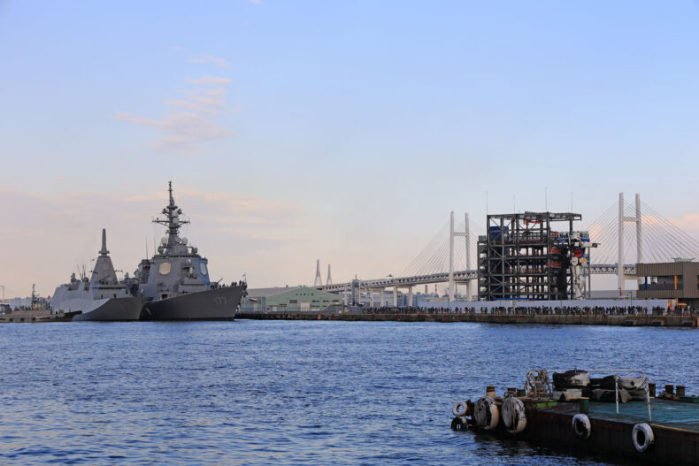 横浜ガンダムの横に海上自衛隊の護衛艦が横付けしていると聞いて、GFYに行ってきました。日中用事があったので夕方になってしまい、Bさんとは入れ違いになってしまいました。
