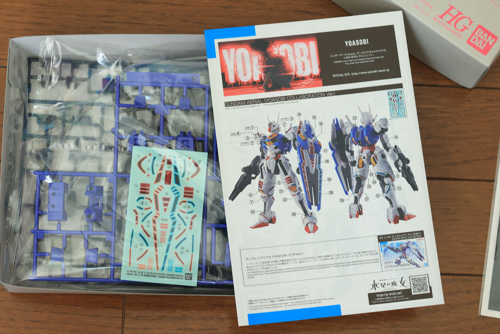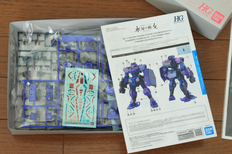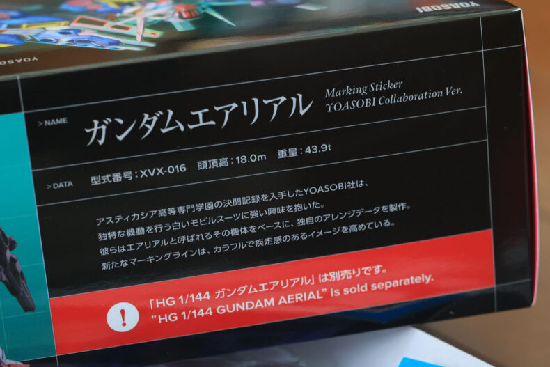 オリジナルガンプラとは、デミトレーナーのYOASOBIバージョンと、HGエアリアルガンダム用のオリジナルステッカーです。