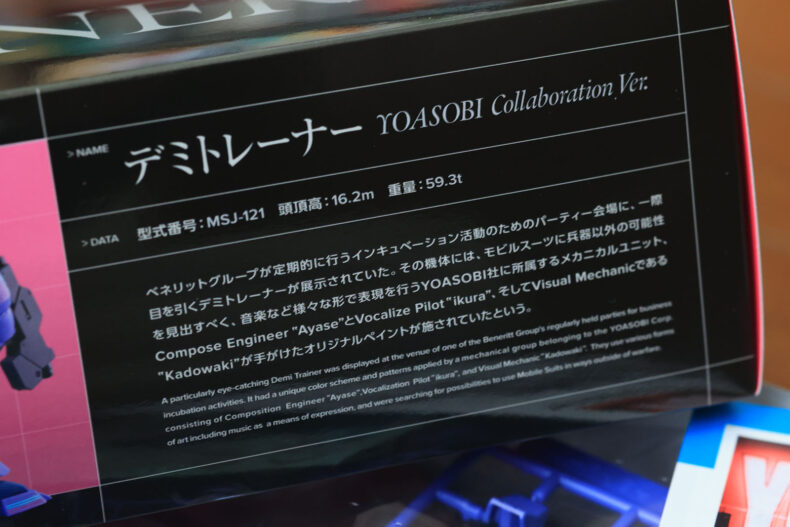 しかしこのデミトレーナーのデザイン…YOASOBIファンの友人によるとファンクラブサイトのデザインテイストと同じらしいのですが、そのテイストのガンプラというのもなかなかですねぇ(困惑