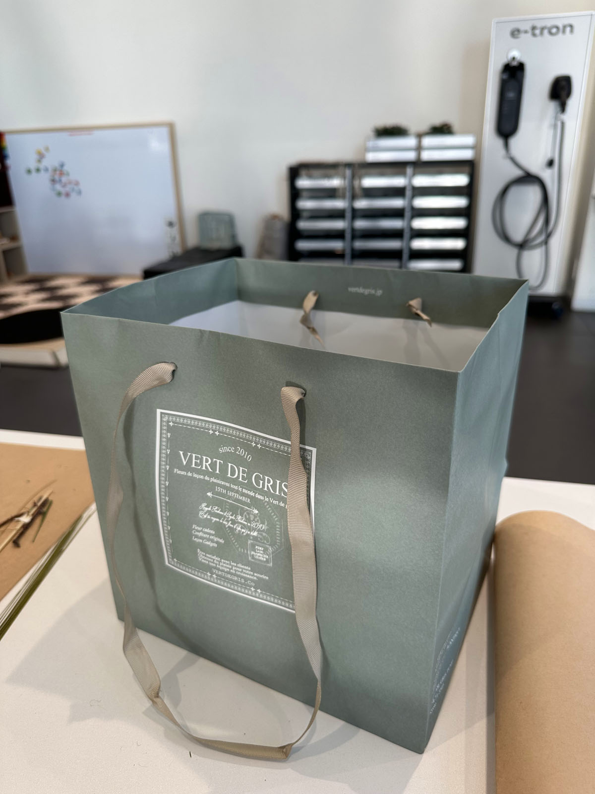 このイベントには京都の方にあるVERT DE GRIS (ヴェール・デ・グリ)という…何屋さんなんだろう、フローリストチームと言うのでしょうか、そこの先生が来られてご指導頂きました。大分のVolvoでの様子がブログに上がってましたが、まぁAudiの方がこぢんまりとしてますが、同じような感じです。Audiもよくこういうお店を見つけてくるなぁ…。