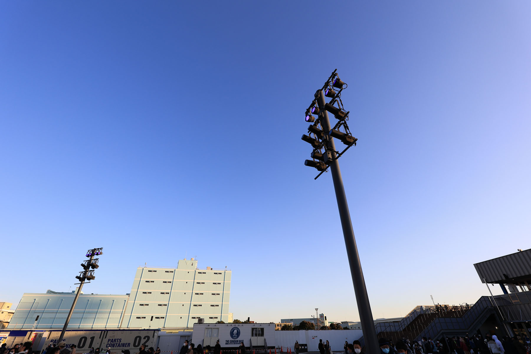 RX-78F00ガンダムにエアリアルのようなシェルユニット発光表現を行う照明は、常設の照明と同じポールに付けられていました。