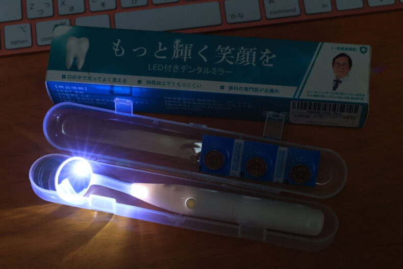 そんな訳で抜歯した箇所の経過観察がとても大事。毎日朝晩デンタルミラーで歯を抜いた穴をしげしげと眺めているのですが、上の奥歯なので光が届きません。LED懐中電灯を当てるにしてもとても難易度が高くて、1分格闘して1秒見られるかどうかという状態でした。