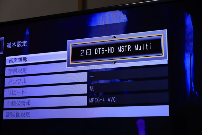 再生に使っているDIGA側のメニューにも音声切替はあるのですが、結果は映像ソフトのトップメニューから音声切替をした場合と同一でした。