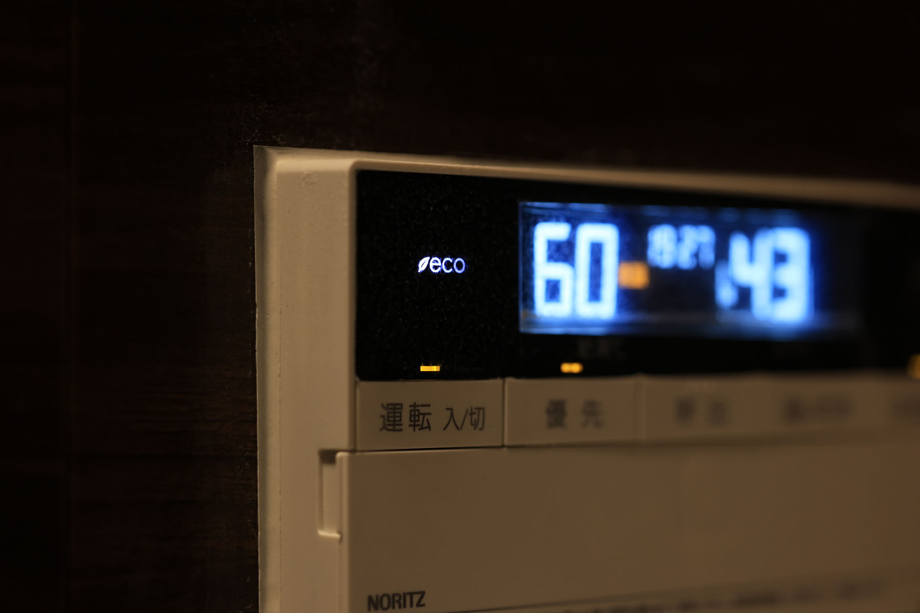 そんな緊張感のない家族がいてもちょっぴり省エネにできるのが給湯器のecoモード。ボタンを押しておくだけで、湯温も湯量も気がつかないレベルでちょっぴり減らし、気がつかれずに省エネにできるというモードです。(ノーリツの場合)