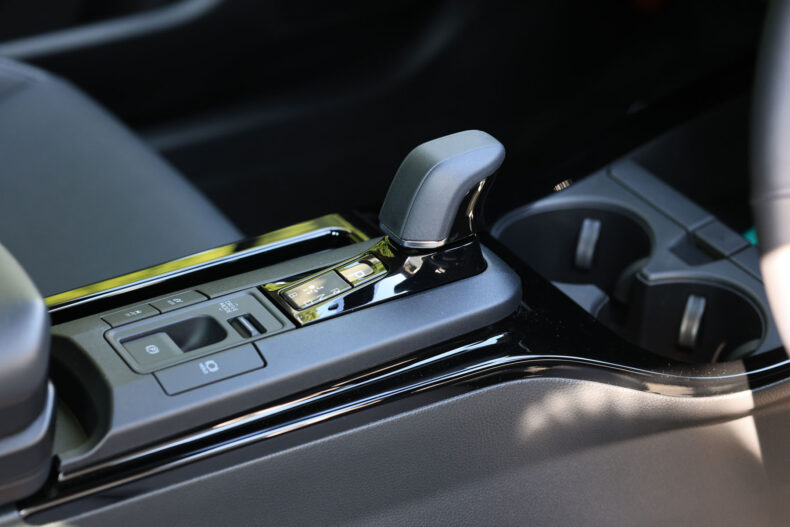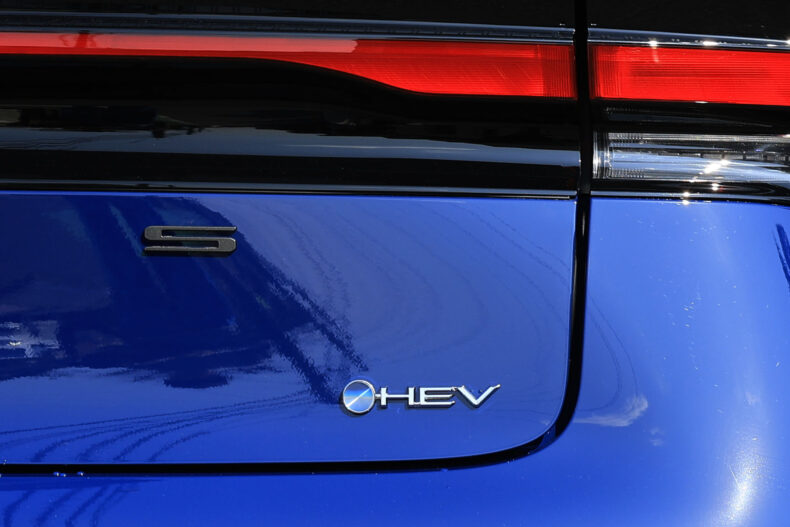 今回から従来の「ハイブリッドシナジードライブ」ロゴに代わって、「HEV」ロゴが装着されました。PHEVは登場時からPHEVでしたが、従来のハイブリッドはP(プラグイン)ではないHEVということでこの呼称になっています。自動車業界内部ではだいぶ前からHEVと呼ばれていましたが、トヨタが「ハイブリッド」という呼称を使い続けていたため、なかなか切り替わりませんでした。