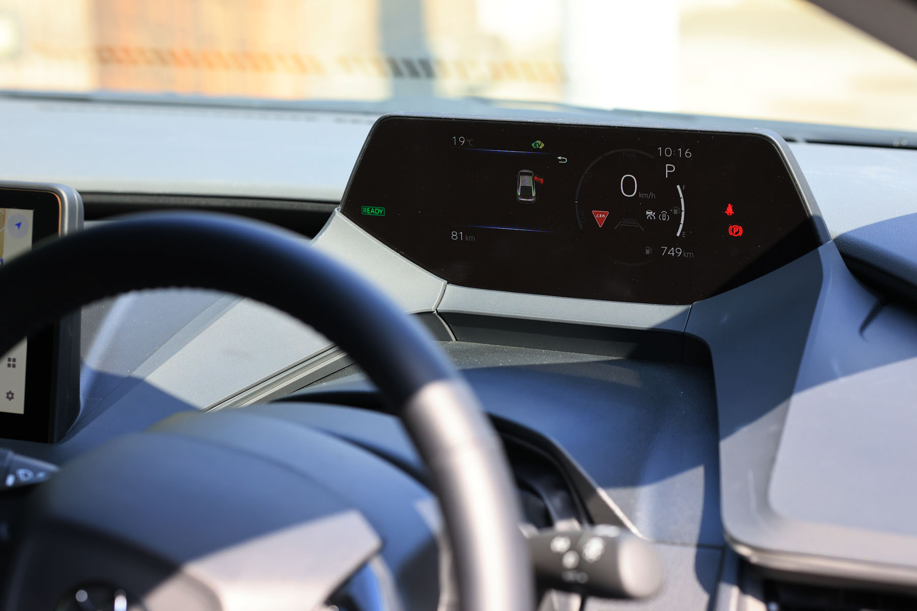 メーターはバイザーなしで、ステアリングの上越しに見るタイプ。あまり見やすいとは思えませんが、機能不全と言うこともありません。新しい乗り物に乗っている感という意味では、充分受け入れ可能であると感じました。バイザーがないため、メーターに付いたホコリに光が当たると結構目に付きます。
