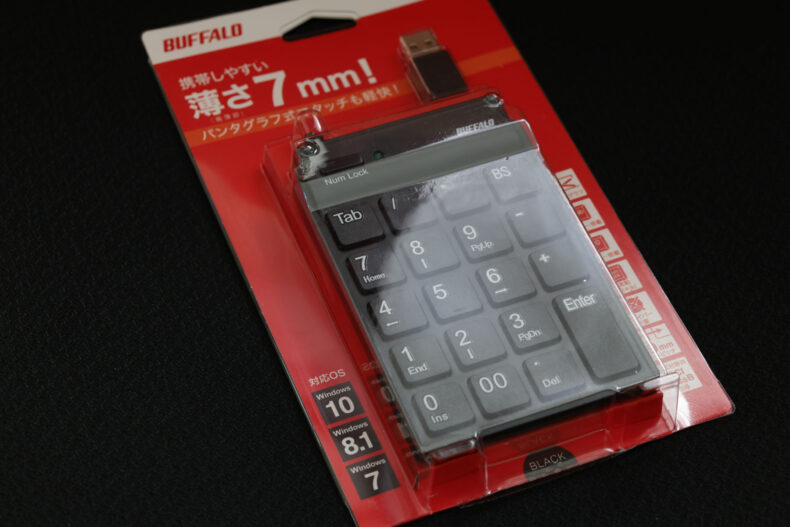 在宅勤務していた妻から「テンキーはないか」と問われ、テンキー不要派の私は持っていなかったので「ない」と応えたところ、「こんなにデジタルガジェットを持っていてテンキーがないのは意外だ」と言われたのでムキになって購入。まぁ900円なのでムキになるほどのものでもないんですけど。