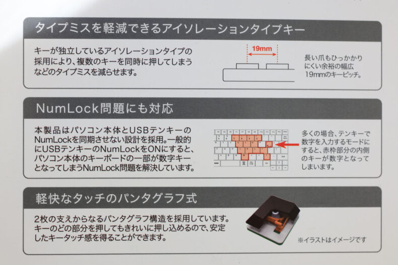 パッケージ裏面に気になる記述発見。NumLock問題なんてあるんですね。知りませんでした。