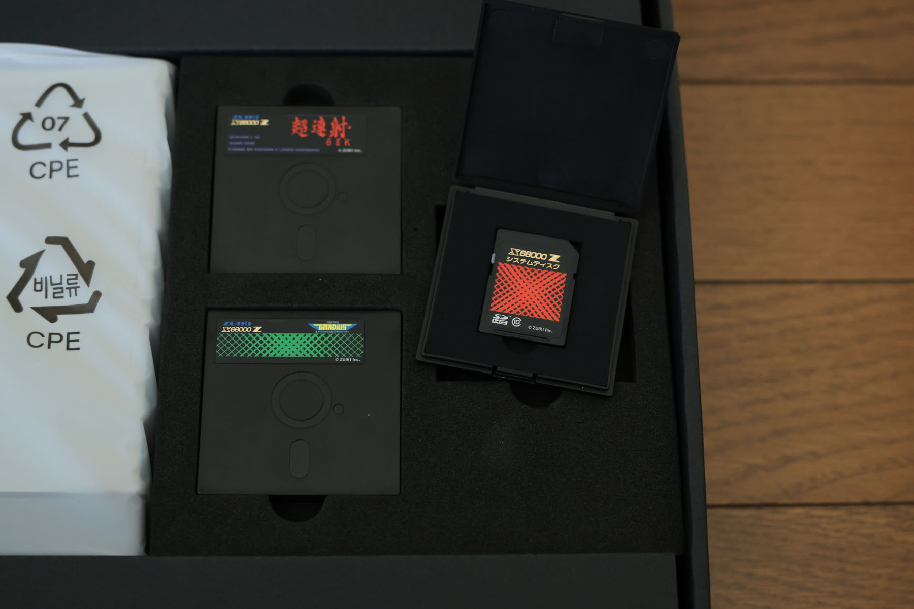 バンドルソフトのSDカード。5インチフロッピーを模したケースに入っています。