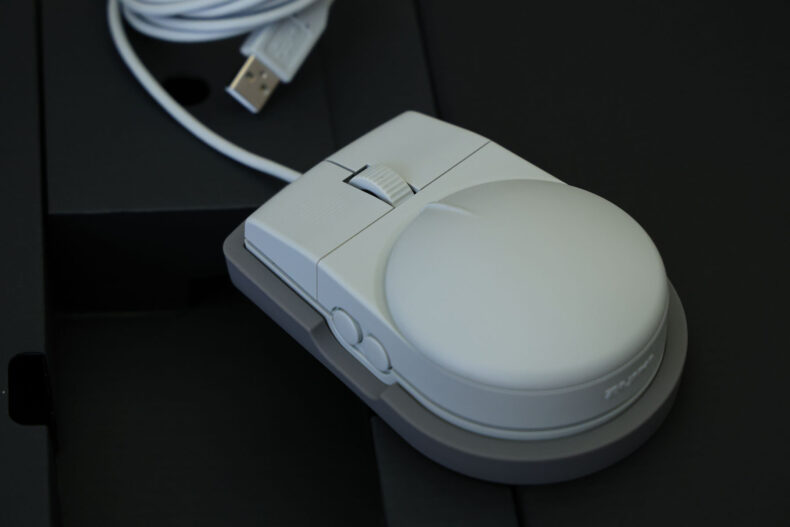 これも想像より大きいですね。こんなに大きかったかなぁ。サイドボタンも機能します。トラックポイントモード用のシリコン製の台座が付属します。