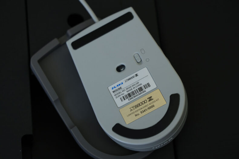 裏面。こちらもシリアル番号は本体と揃っています。Windows機でも使えるように、モード切り替えの小さなスイッチがあります。