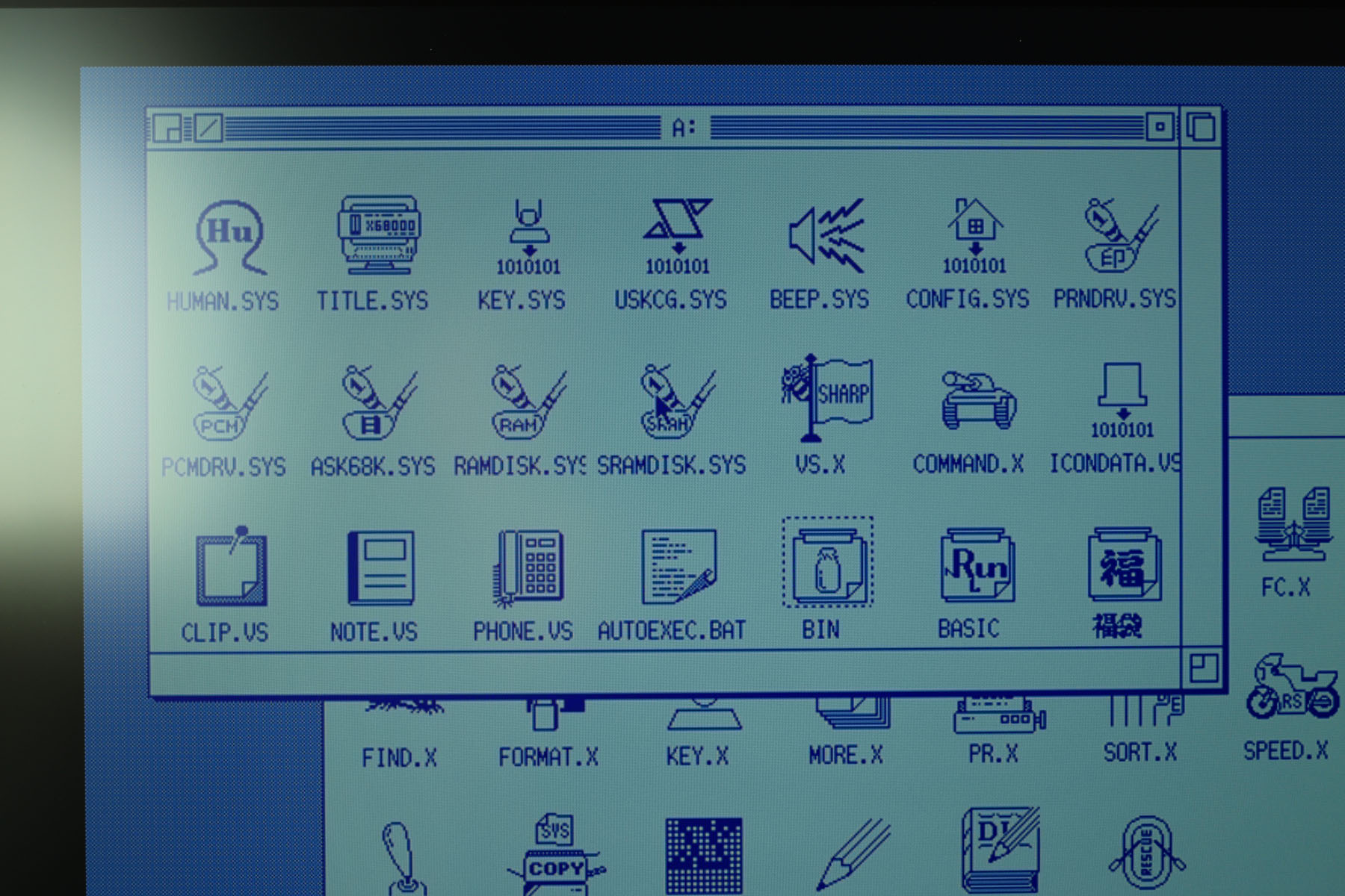 Human68Kに戻ってみました。この時代ってシステムファイルとアプリケーションとデータが同じフォルダにごっちゃに入っていていて今見るとカオスですね。