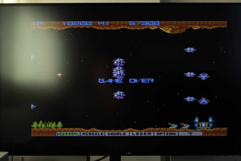 次にグラディウスでも起動しようかと思ったのですがゲームソフトはセットアップユーティリティ(インタラプトを押しながらリセット、インタラプトは長押し)を表示しないと起動できないんですね。これはオリジナルのX68000には存在しないものです。