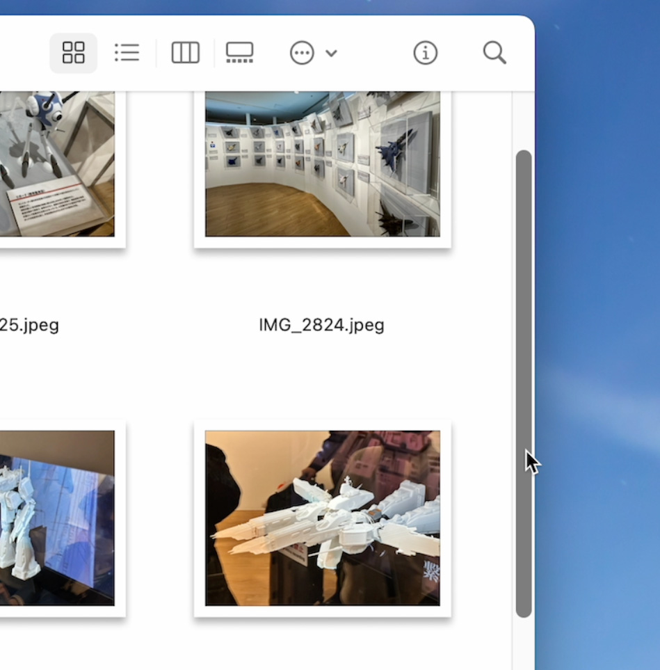 スクロールバーの上にマウスカーソルを載せると、幅が太くなって操作しやすくなるんです。ですが、これはApple製のマジックマウス、マジックトラックパッド専用の機能のようで、Logicoolのマウスではこのような挙動にはならないんです。こんなところでマウスの機種判別なんかしなくていいのに…。