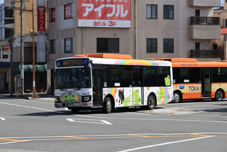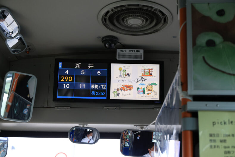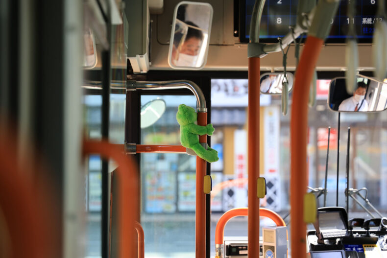 公開されていたバス時刻表通りにバスは来るのですが、ピクルスバスではありません。2本(1時間)くらい待ってみたんですが、来るバス来るバスみんなピクルスじゃない。そのピクルスバスではない運転手に訊いちゃいましたよ。「カエルのバスは走ってないんですか?」って。そうしたら「走ってるよ」って言うじゃありませんか。これは計画が変わって違う路線に行っちゃってるのか…?と、もう片方のターミナル、伊東駅前に行ってみたところ、